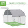 The hexagonal chain link fence of this Rootz enclosure provides fresh air while the cover protects from heat and rain. The outdoor enclosure area is large enough for 4-6 chickens and offers plenty of freedom of movement. Thanks to the lockable door of the free-range chicken run, your animals remain safely protected from danger.