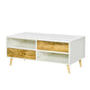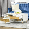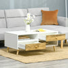 Een slim en strak design, met een klassieke touch. Deze salontafel van Rootz combineert een witte, blokvormige structuur met accenten met houtlook voor een verbluffende en veelzijdige look. Gemaakt van spaanplaat, duurzaam, dus u kunt hem regelmatig gebruiken. Hij wordt geleverd met twee planken en twee lades voor handige opbergruimte. De lades worden geleverd met handgrepen om ze gemakkelijk te openen en te sluiten. Afgewerkt met vier stompe poten voor balans.