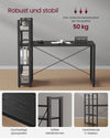 An Ebony Black computer desk featuring shelves on the right or left side for efficient storage and organization. Perfect for home offices or study spaces.