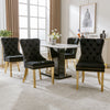 Experience the perfect blend of style and comfort with The Rootz elegant black upholstered dining chair. Crafted from luxurious velvet and featuring stunning gilded stainless steel legs, this chair is designed for various spaces including dining rooms, kitchens, and living areas. Its unique round design and nail head trim add sophistication, making it a focal point in any setting.