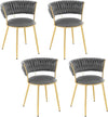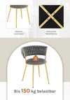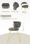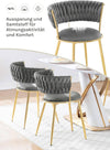 The Rootz Dining Chair, Metal Legs, Velvet, 4er Set, Grey, Woven Backrest