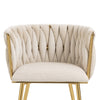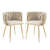 Elevate your space with this set of 2 velvet dining chairs featuring gold plated metal legs in ivory white color. Perfect for small spaces in offices or living rooms, adding a touch of elegance and comfort.