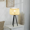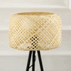 BOHO STIJL: Deze bureaulamp heeft een lampenkap van geweven bamboe en een zwart statief voor een natuurlijke en gezellige boho-look.