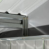SCHUIN DAK: Laat water naar de grond rollen, waardoor ophoping, stagnatie en roestschade worden voorkomen. SCHUUR MET DUBBELE DEUR: Biedt gemakkelijke toegang tot een metalen tuinhuisje met een binnenbodem en houdt alles buiten de buurt van buren enz.