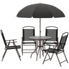The Rootz Bistro Garden Furniture Set: Complete 6-Part Round Table, Parasol, and Stylish Foldable Chairs