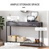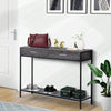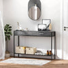Deze industriële consoletafel van Rootz combineert stijl en opbergfunctie en is een opvallend meubelstuk dat u vanaf het begin graag in huis zult hebben. Hij heeft twee uitschuifbare lades, een ruime boven- en onderplank en biedt voldoende opberg- en displayruimte om uw ruimte netjes te houden. Hij is afgewerkt in een glad grijs houttintontwerp en kan worden schoongemaakt en mooi worden gehouden met slechts een doekje. Nu hoeft u alleen nog maar te beslissen waar u hem neerzet.