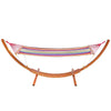 Experience ultimate relaxation with The Rootz Garden Hammatt, a perfect combination of style and comfort. This robust outdoor hammock chair is made from an elegant pine wood frame and soft, stable cotton fabric. With a maximum load capacity of 120 kg, it's designed for solo sunbathing or resting, while ensuring long-lasting enjoyment through its corrosion-resistant features.