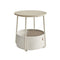 Ruimtebesparend ontwerpDeze moderne bijzettafel heeft een compact ontwerp met een ingebouwde stoffen mand, waardoor hij perfect is voor kleine ruimtes en toch voldoende opbergruimte biedt.