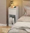 The Rootz bedside table in White is a stunning addition to any bedroom, offering a sleek and modern design. Crafted from high-quality wooden chipboard and MDF, it ensures durability and elegance. With its ample surface and convenient drawer, this bedside table provides the perfect place to store your essentials and enhance your room's aesthetic.