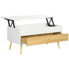 The Rootz Rectangular Coffee Table with Folding Tray and Drawer - Light Wood and White