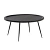A robust quadruple frame supports the table top, showcasing visible natural wood grain. Handmade with care, each table is a unique piece with a black finish.