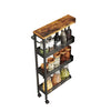 The Rootz Rolling Car is a sleek and practical kitchen solution perfect for any home. With its stylish vintage brown black finish, it combines functionality and aesthetics to meet your storage needs. Made from robust wooden chipboard and steel, this narrow trolley features four levels for versatile storage options while maintaining a total static load capacity of 20 kg.