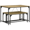INDUSTRIEEL ONTWERP : Zwarte frames en tafel- en bankbladen met houtlook voor een modieus en opvallend ontwerp.