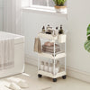 Experience seamless organization with The Rootz Storage Trolley, featuring three spacious baskets, a towel rack, smooth-gliding wheels, and a sturdy metal frame. Its elegant white design keeps your home or office tidy by storing everyday essentials, small items, and towels. Perfect for kitchens, bathrooms, or workspaces, this multipurpose trolley maximizes storage, ensures easy access, and moves with ease thanks to its ergonomic handle and mobile wheels.