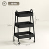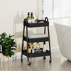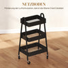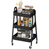 The Rootz Three-Level Black Kitchen Trolley with Brake and Roller Handle for Multipurpose Use