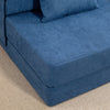 The Rootz floor sofa, upholstered couch, converts effortlessly into a blue mattress