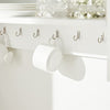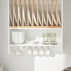 - Het heeft opbergruimte voor 11 borden en opberggedeelte voor kommen, mokken, kopjes enz. en 7 haken aan de onderkant voor het ophangen van kopjes.