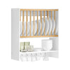 - Dit stijlvolle aan de muur gemonteerde bordenrek voegt extra opbergruimte toe aan uw keuken.