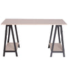 Dit veelzijdige bureau van Vinsetto biedt niet alleen veel ruimte op het mooie tafelblad met een natuurlijke houtlook, maar ook op de planken, die ruimtebesparend in de stevige poten van elegant zwart metaal zijn geïntegreerd. De kruisvormige stutten zorgen voor extra stabiliteit. De MDF-platen met PVC-coating zijn duurzaam en gemakkelijk te onderhouden. Dankzij het eenvoudige ontwerp kan de tafel ook als woonkamer- en eettafel worden gebruikt. Haal deze chique allrounder in huis! Duurzame constructie: Dit bureau is gemaakt van stevige MDF-panelen en metalen frames en garandeert een lange levensduur en stabiliteit voor al uw kantoorbehoeften. Ruim ontwerp: Het grote werkoppervlak en de twee geïntegreerde planken bieden voldoende ruimte voor kantoorbenodigdheden, waardoor het ideaal is voor multitasking. Elegante esthetiek: de natuurlijke houtkleur in combinatie met zwart metaal past bij elke stijl en voegt een vleugje verfijning toe aan elke kamer. Eenvoudig onderhoud: Dankzij de PVC-coating op de MDF-platen is het bureau eenvoudig schoon te maken, zodat het met minimale inspanning in topconditie blijft.Productinformatie