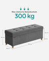 Ruime opbergruimteMet een inhoud van 112 liter biedt deze poef veel ruimte voor het opbergen van dekens, boeken, speelgoed en meer, waardoor uw woonruimte netjes en opgeruimd blijft.