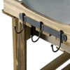- Drie metalen haken aan de rechterkant zijn handig om tuingereedschap aan op te hangen