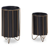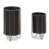 Maak kennis met de Rootz praktische set van 2 plantenpotten, een perfecte mix van modern design, elegantie en functionaliteit. Deze harmonieuze kleurenmix van zwart en goud voegt een vleugje verfijning toe aan elke ruimte. Elke pot is liefdevol met de hand gemaakt, waardoor elk stuk uniek en bijzonder is.