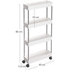 Voldoen aan uw opslagbehoeften: totale afmetingen zijn 40 x 12,5 x 86 (B x D x H), met 4 beschikbare planken; hoogte tussen planken is 25 cm; opstaande randen voorkomen dat items wegglijden; planken zijn verbonden door klikverbindingen en de hele kar kan tot 20 kg dragen; 5 kg per niveau.
