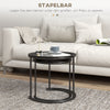 Add an elegant touch to your interior with this exquisite set of two stackable small side tables in black metal. These versatile, modular coffee tables fit seamlessly into any environment and easily slide into one another to save space. Both table tops of the living room tables are also removable and can be used as a tray!
