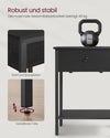 Add a touch of elegance to your living space with this versatile side table featuring a drawer and shelf. The ebony black finish complements any decor, while the chipboard and steel construction ensures durability.