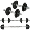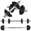 Halterstang en halter in één: Train met de twee halters of monteer ze gemakkelijk tot een halterstang. Het totale gewicht bedraagt 20 kg. De leveringsomvang omvat vier 2,5 kg gewichtsschijven, vier 1,25 kg gewichtsschijven, evenals 2 haltergrepen en een verbindingsstang. Combineer de gewichten en de halterlengte naar eigen smaak om uw training bijzonder veelzijdig en effectief te maken.