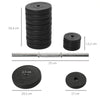 - Totaalgewicht: 50 kg per set (8 x 5 kg gewichten + 4 x 1,5 kg gewichten + 2 x 2 kg halterstang = totaal 50 kg)