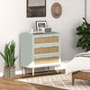 Illuminate your space with the Rootz chest of drawers. Featuring a stunning boho-chic rattan front, this light blue storage furniture combines elegance with functionality. With three spacious drawers, each capable of holding 20 T-shirts or eight jeans, it’s perfect for any living room or hallway. The non-slip foot caps ensure stability, while the easy-clean design makes maintenance effortless.