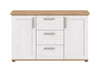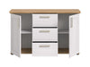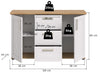 Create a timeless appeal with The Rootz Sideboard, a perfect fusion of style and functionality. Designed in a charming country-house look, this sideboard features two doors, two removable and height-adjustable shelves, three drawers, and four compartments for ample storage. The White and Brown on both corpus and front adds a rustic touch to your living area. Its modern design ensures it complements any interior seamlessly.