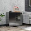 This stylish ROOZ SIDEBAARD storage cabinet combines functionality and sophistication. With two drawers and two doors featuring a height-adjustable shelf, it provides ample storage for any room, including living rooms, bedrooms, and offices. The glossy black finish and wood-look grey details enhance its modern charm while ensuring durability for everyday use.