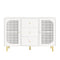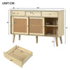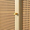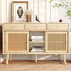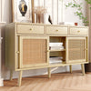 This elegant sideboard combines a retro charm with modern functionality. Featuring three spacious drawers and three sliding doors, it offers ample storage while showcasing rattan mesh fronts and golden metal handles. Crafted from natural MDF and robust wood, this sideboard is not only visually stunning but also practical, ensuring long-lasting use in your living room.