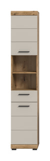 Discover elegance and functionality with The Rootz Tall Cabinet. This stunning piece offers ample storage with its 37x191x31 cm dimensions. Featuring two doors, two open compartments, four closed compartments, and three height-adjustable shelves, it's perfect for organizing your essentials. The high-quality MDF front with milled grooves adds a trendy touch, while the reversible door hinge ensures versatile use. Enhance your living space with this easy-care, chic cabinet.