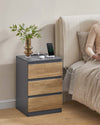 The Rootz Stylish Bedside Table 2 Set with Drawer and Charging Station in Grey and Brown