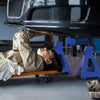 Introducing The Rootz Stepbock, a premium two-piece support stone set designed to bear loads up to 3 tons. With adjustable heights ranging from 385 mm to 600 mm, it accommodates various vehicle types. Crafted from carbon steel and cast iron, it ensures durability and robust performance. Its pyramid-shaped base with four wide feet enhances stability, making it ideal for vehicle maintenance and repairs.