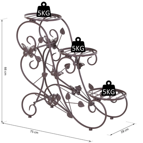 Rootz Plantentrap - Plantenrek - Bloemenstandaard - Metaal - Brons - 3 Niveaus - 75 x 28 x 66 cm
