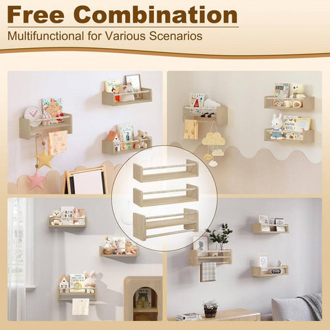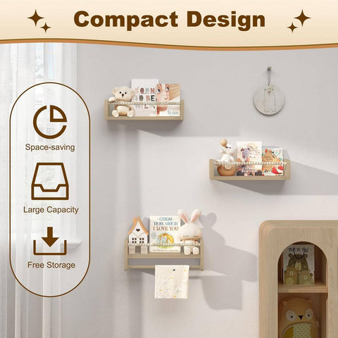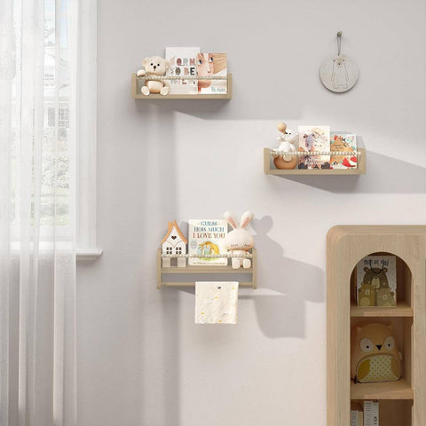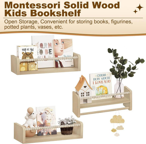 Rootz Children's Wall Shelf Set - Kids Floating Shelves - Montessori Bookshelf - Pine Wood - 40/50/60cm x 15cm x 14cm - Solid Build