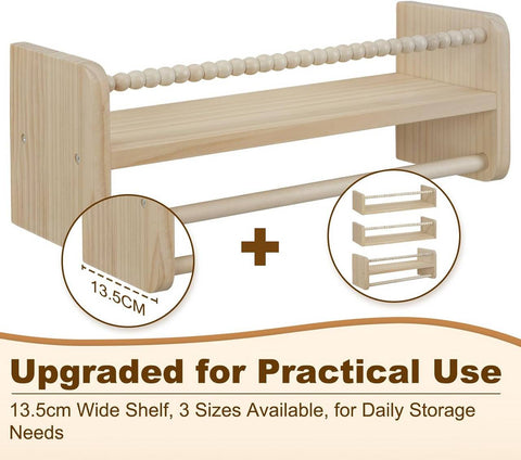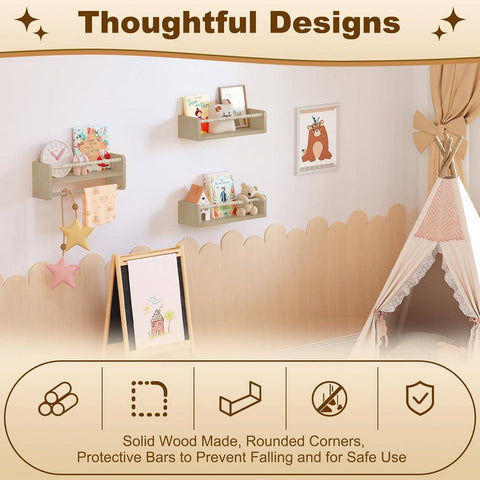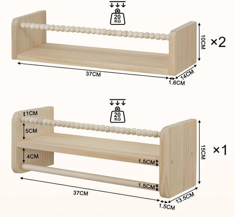 The Rootz Kids Wooden Floating Shelf Set of 3 with Hanging Rod Enhance your child's room with this set of 3 floating shelves made of solid wood. Save space, organize...