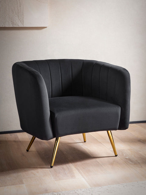 Rootz Cozy Lounge Chair - Modern Armchair - Velvet Seat - Soft Comfort - 85cm x 72cm x 60cm - Black & Gold Design