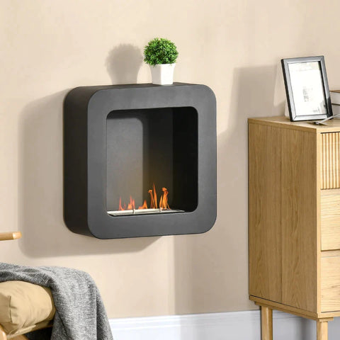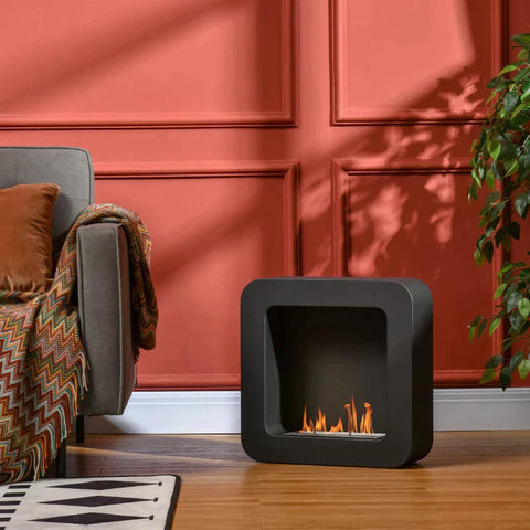 Rootz Ethanol Haard - Bio-ethanol Brander - Vuurschaal - 2,5 Uur Brandtijd - Wandhaard Met Brandblusdeksel - IJzer - Zwart - 48 x 18 x 48 cm