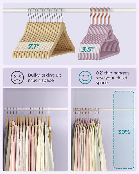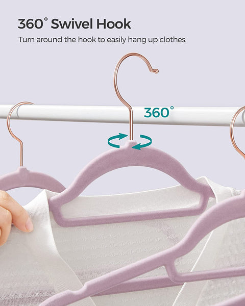 Rootz Hangers - Fluwelen Hangers - Set Van 50 Fluwelen Hangers - Fluwelen Kledinghanger - Premium Kwaliteit Hanger - Stijlvolle Fluwelen Hanger - Zacht Paars - 43,5 x 0,6 x 22,5 cm