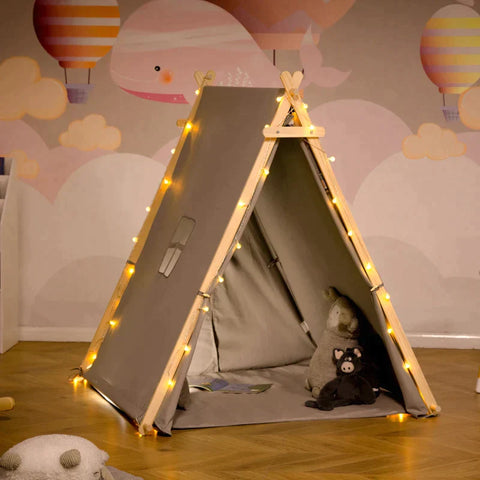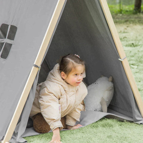 Rootz Kids Tipi Tent - Tipi Kindertent - Polyester Katoen Stof - Grenenhout - 130 cm x 111 cm x 136 cm