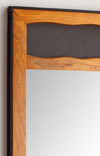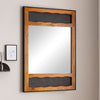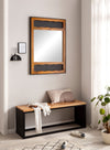 - Materiaal: glazen spiegeloppervlak, massief mangohouten frame, ijzeren frame, MDF-achterwand