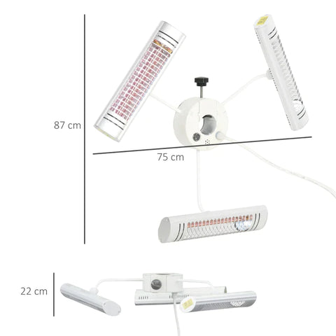 Rootz Radiant Heater - Infrarood Verwarming - 3 Verwarmingskoppen - Met Afstandsbediening - Aluminium - 87 x 75 x 22 cm