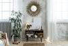 The Rootz Round Wall Mirror with Sun-Shaped Frame in Antique Brass