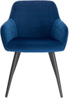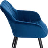 The Rootz Set van 2 eetkamerstoelen met armleuningen, fluwelen zitting, blauwe metalen poten
