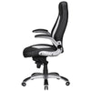 - Kleur: Zwart met witte strepen, aluminiumkleurige armleuningen en onderstel